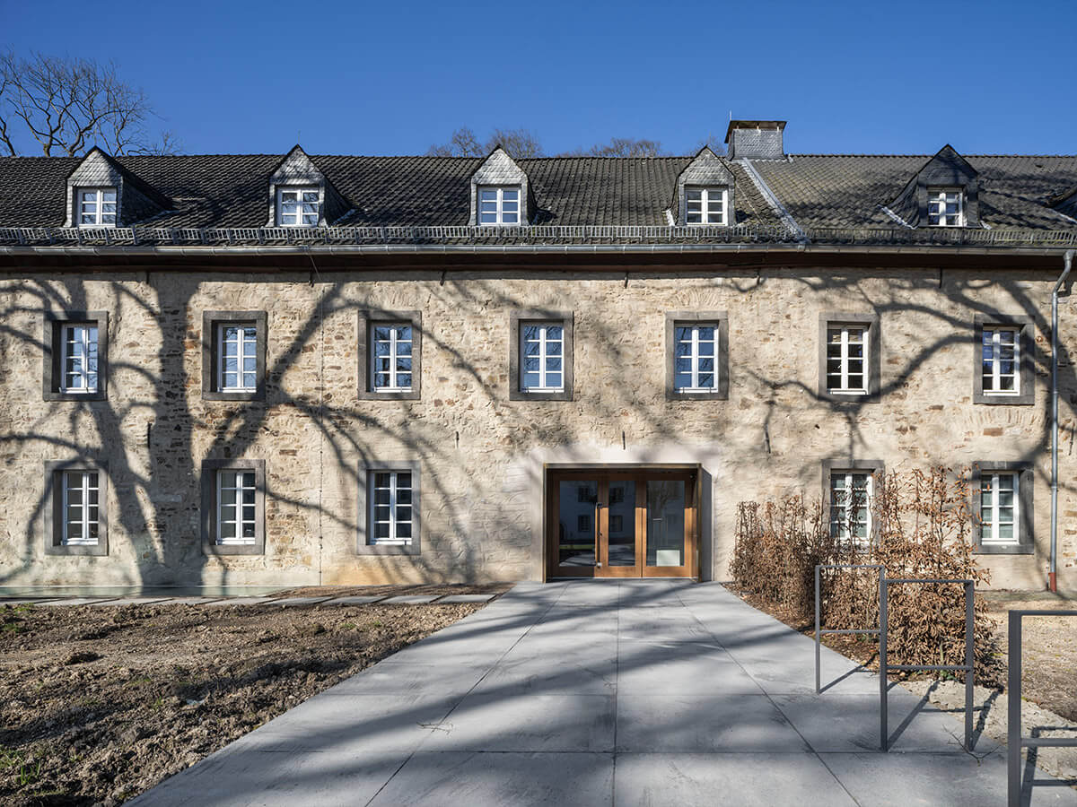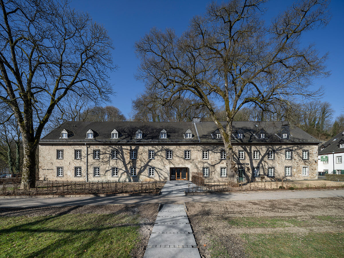 Gemeinsam mit dem sogenannten „Torhaus“ bildet das Gebäude eine bauliche Einheit an der ehemaligen Westmauer der Klosteranlage, unmittelbar an den Fluss Dhünn angrenzend. Die Gebäude haben seither mehrfache Überformungen erfahren.