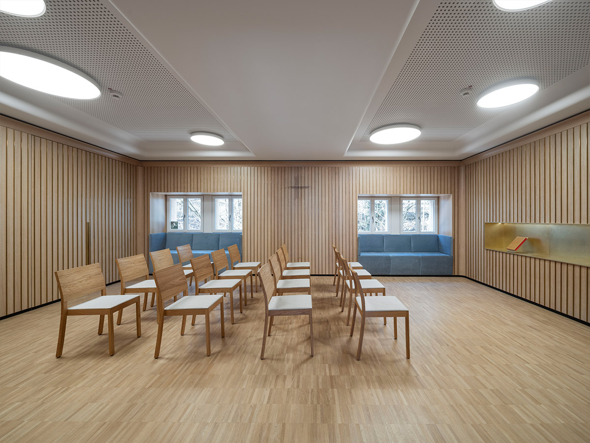 Das „Edith-Stein-Haus“ beherbergt 22 Gästezimmer, Räume für Seminare, Meditation, Werkräume und Besprechungs- sowie Büroräume. Zentrum des Gebäudes ist der „Raum der Stille“. Die Maßnahme beinhaltet die Modernisierung der Gästebereiche, die brandschutztechnische Sanierung, den barrierefreien Umbau inkl. eines Aufzugs, die unterirdische Erweiterung eines großzügigen Meditationsraumes mit begehbaren Glasflächen, die Verlegung des Haupteingangs, sowie die Umgestaltung der Außenanlage unter Berücksichtigung der Belange des angrenzenden Naturschutzgebietes.